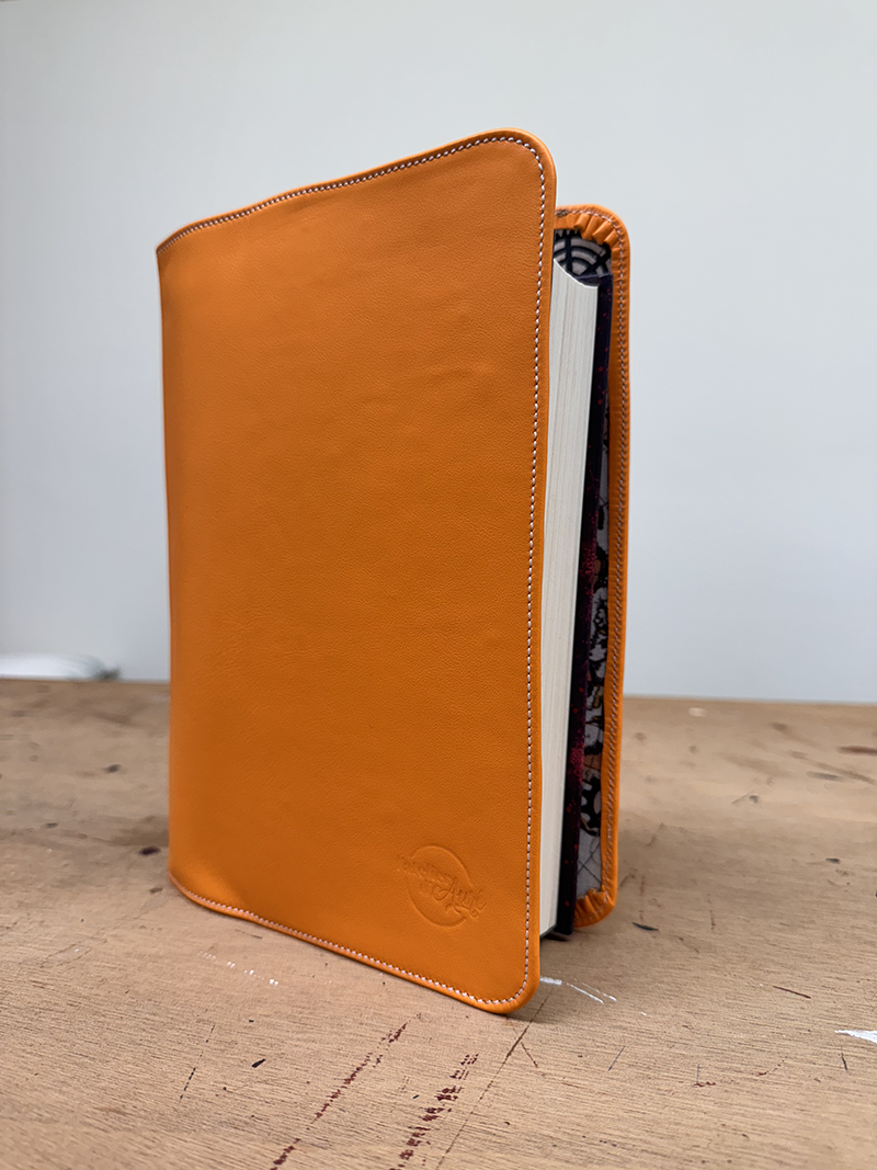 Confectionné en cuir pleine fleur, il épouse parfaitement la forme de l’ouvrage grâce à un système d’élastiques discrets à l’intérieur. Une doublure textile soigneusement choisie apporte une touche de douceur et de contraste à l’intérieur.